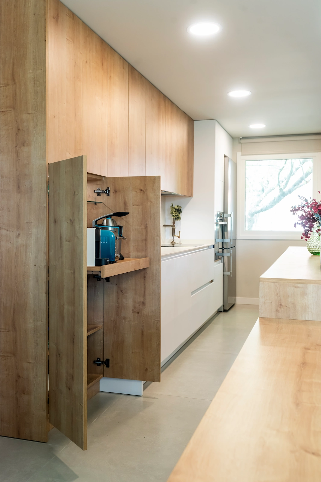 «Fantástica experiencia. Desde el principio hasta el final, un proceso de 10. No conseguía dar solución a mi cocina, dentro de una preciosa reforma integral en una casa de 1974: muros abajo dando paso a grandes espacios luminosos, moderno elegante, funcional… y una estrecha y oscura cocina con la que no sabía qué hacer. En Drommen estudiaron y analizaron los espacios, las posibilidades de luz, mis gustos, las necesidades de almacenaje… y elaboraron un precioso proyecto para disimular las debilidades, potenciar los puntos fuertes y jugar con los efectos visuales. El resultado me pareció espectacular en papel, pero más espectacular aún me pareció el resultado final, real. A día de hoy y tras varios meses de uso, puedo asegurar que no solamente es bonita, es funcional, cómoda y sólida, con buenos materiales y resistentes. Relación calidad precio muy buena. Recomendable al 100% 💫»