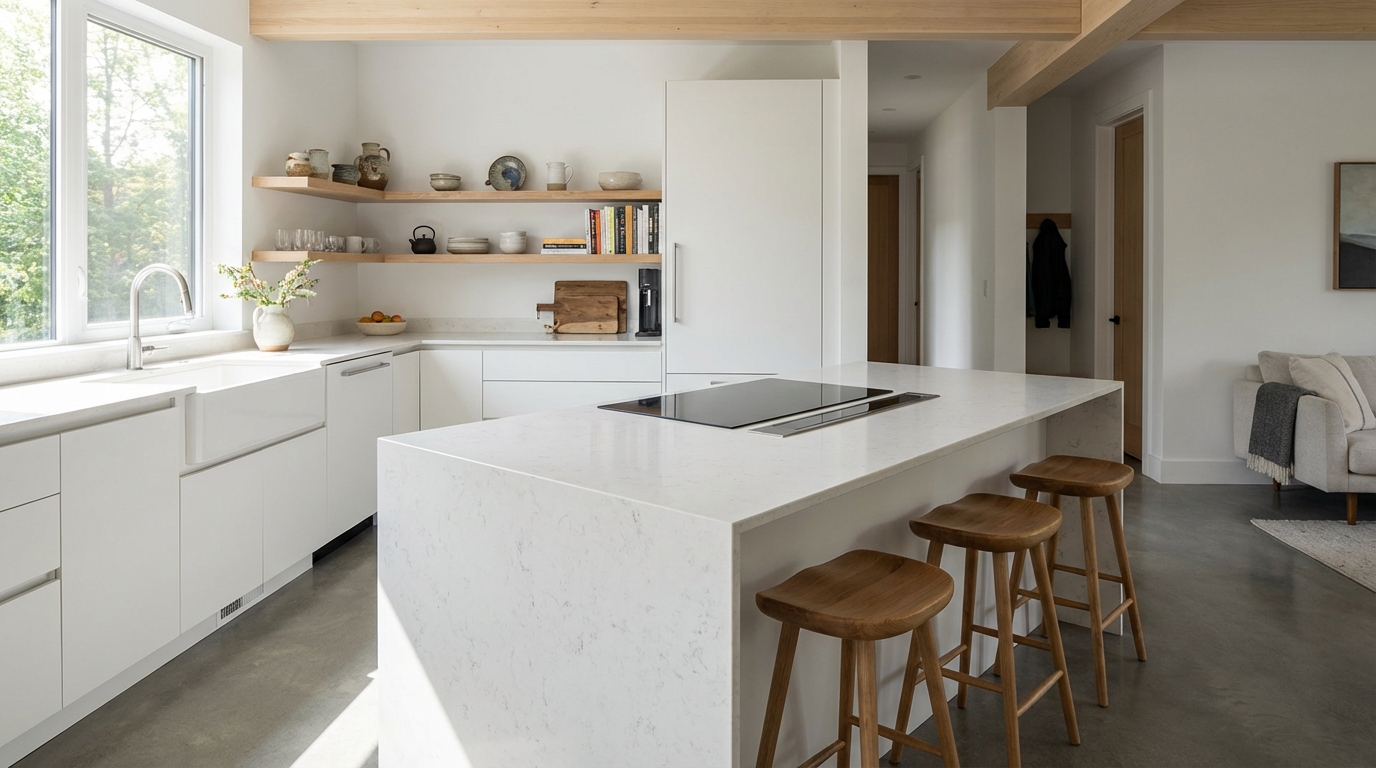 En Studio Drommen llevamos años diseñando este tipo de distribuciones y conocemos sus ventajas reales. La penÃnsula ofrece superficie de trabajo adicional, zona de comedor informal y almacenamiento extra en un solo elemento. Vamos a explorar cómo sacarle el máximo partido.
