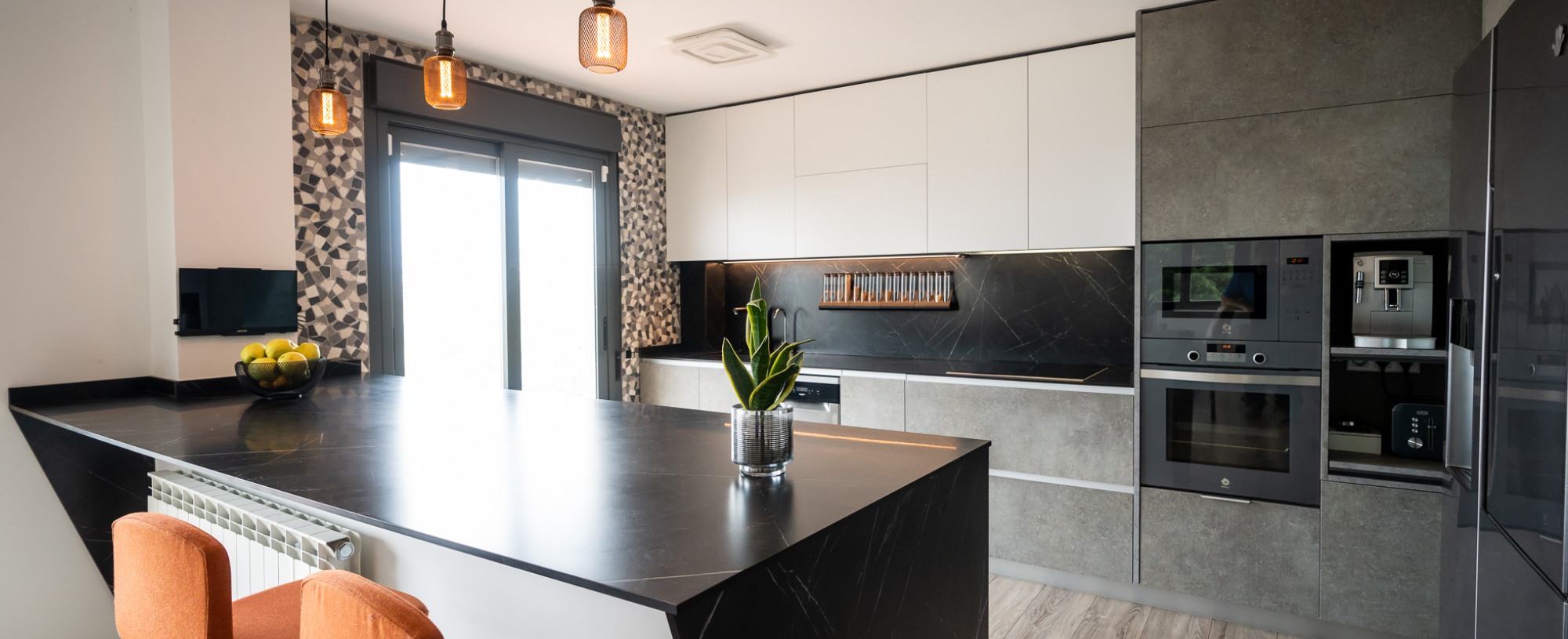 La encimera supone habitualmente entre el 8% y el 15% del presupuesto de reforma. El granito, el mármol y la pizarra ofrecen resistencia excepcional y una estética inigualable. Cada pieza presenta vetas y tonalidades únicas que aportan personalidad al conjunto.